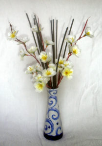 - Odstraňte uzávěr, směs přelijte do porcelánové difuzérní nádoby a vsuňte hrdlem ratanové/ rákosové tyčinky, rozprostřete je, aby dobře vypadaly a aby měly co největší odpařovací plochu. Může trvat i několik hodin (cca 4 -5 hod.), než se tyčinky olejem zcela nasáknou a difuzér provoní pokoj. Rychlým zamáváním nad tyčinkami povzbudíte difuzor k vyššímu výkonu (rychlejší pohyb vzduchu, rychlejší odpařování).