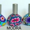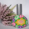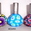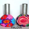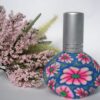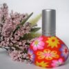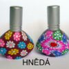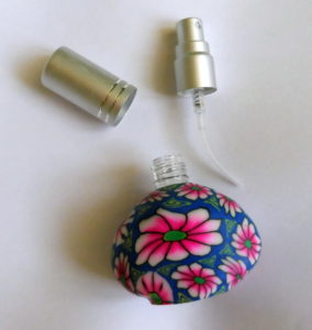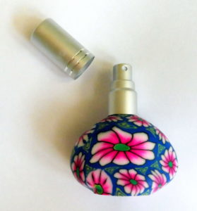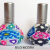 Parfémový flakón o objemu 15ml vyroben z foukané pryskyřice, avšak vnitřek flakónu je ze skla. Stříbrný rozprašovač, Různé podkladové barvy