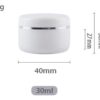 30 ml dóza jednoplášťová. Víčko s elegantním stříbrným proužkem