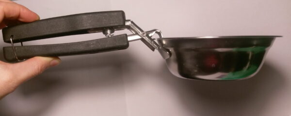 Velmi praktický držák nerezových misek, které při výrobě kosmetiky ve vodní lázni vedou teplo a nedají se udržet holou rukou.