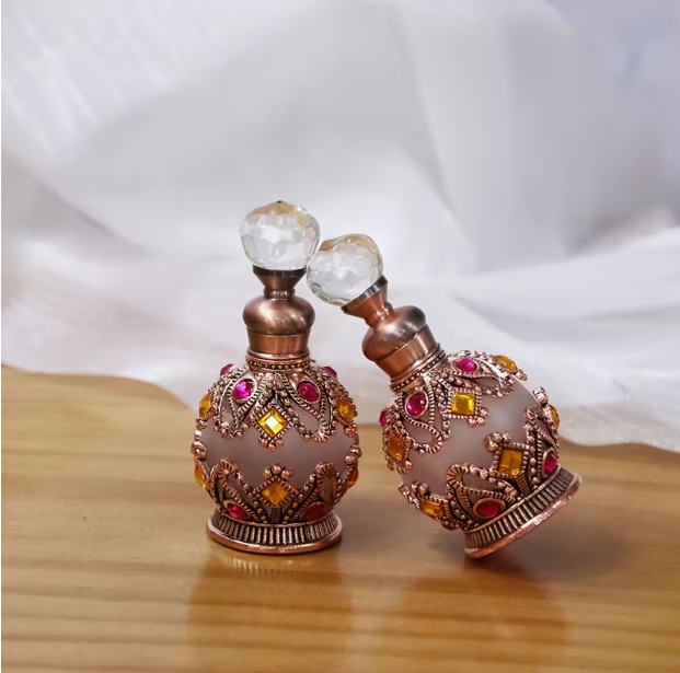 vintage kulatý parfémový flakón zdobený krystaly, dekorativní skleněny aplikátor v arabském stylu, flakón je zcela bez použití PVC, ideální pro domácí dekor, každodenní použití, cestování, dárek pro ženy a dívky