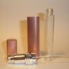 Parfémový flakon s rozprašovačem. Vnitřní vložka je ze skla a má objem 10 ml, obal je vyroben z aluminia.