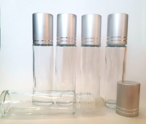 ROLL- ON čiré silnostěnné sklo 10 ml -střibrný vršek, roll kulička sklo Zdarma! Out of Stock